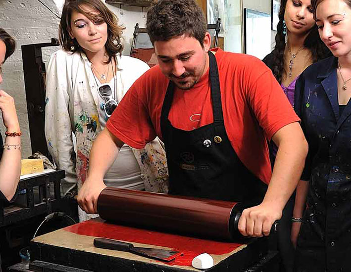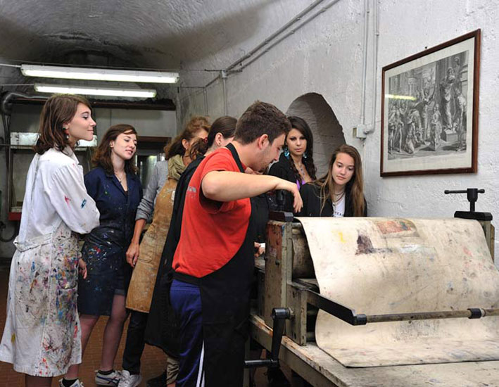 Mediante l'utilizzo delle speciali pietre calcaree, le matite grasse, l'inchiostro litografico e i diversi passaggi tecnici nessuno riuscirà a sottrarsi dal fascino di vedere "cosa è uscito" dal noto "torchio a stella".