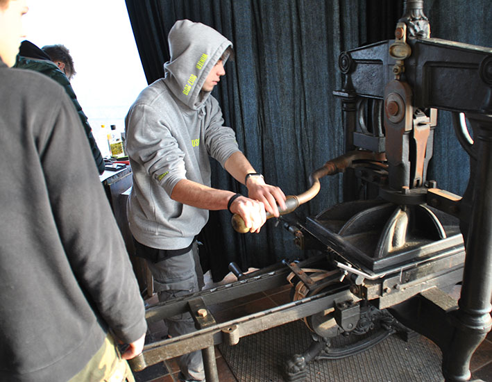 L’attività comprende anche una dimostrazione di stampa tipografica su carta.